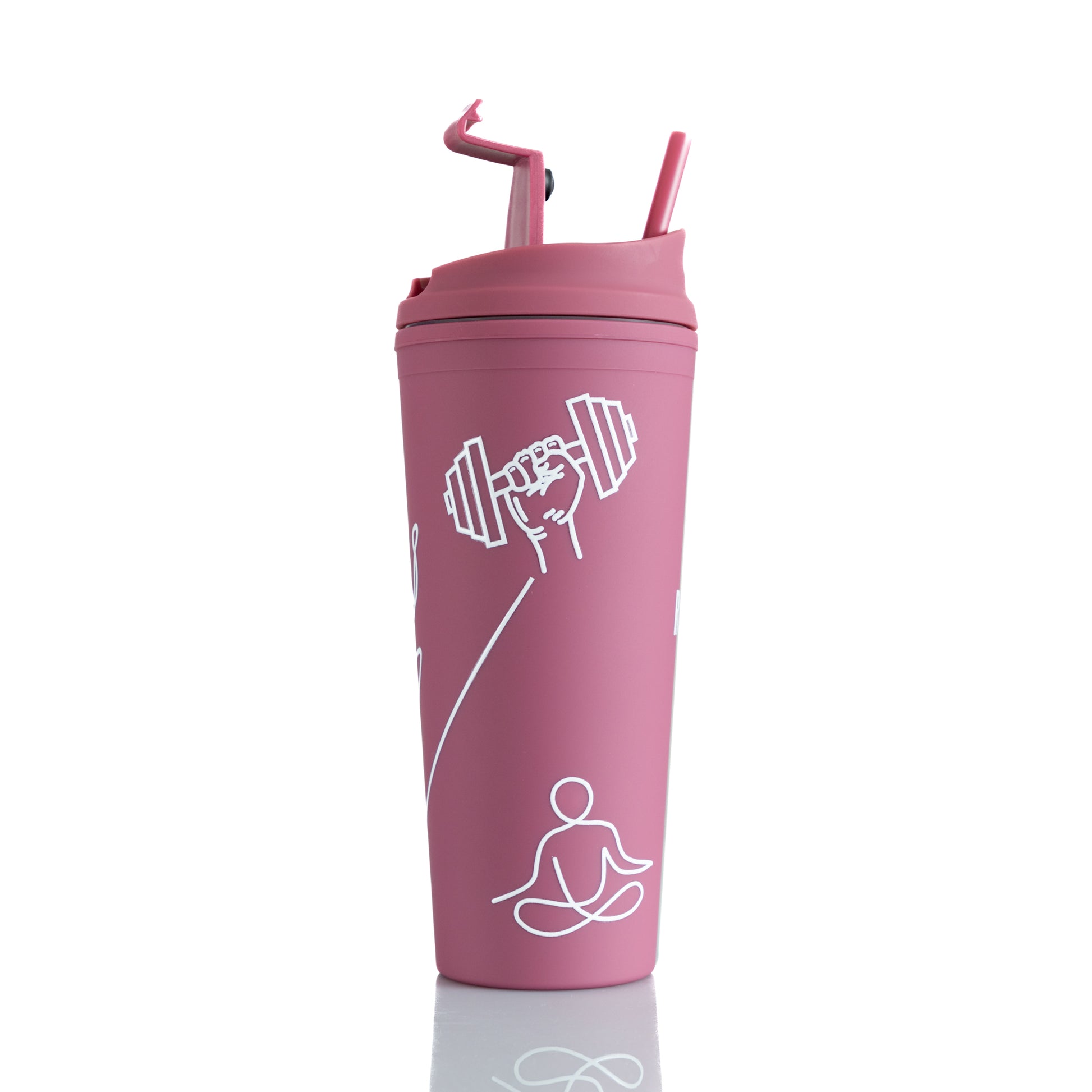 Vaso de acrílico con doble pared de plástico Acrilonitrilo Estireno (BPA Free) reutilizable con popote. Guarda el calor hasta una hora y el frío un máximo de 4 horas.